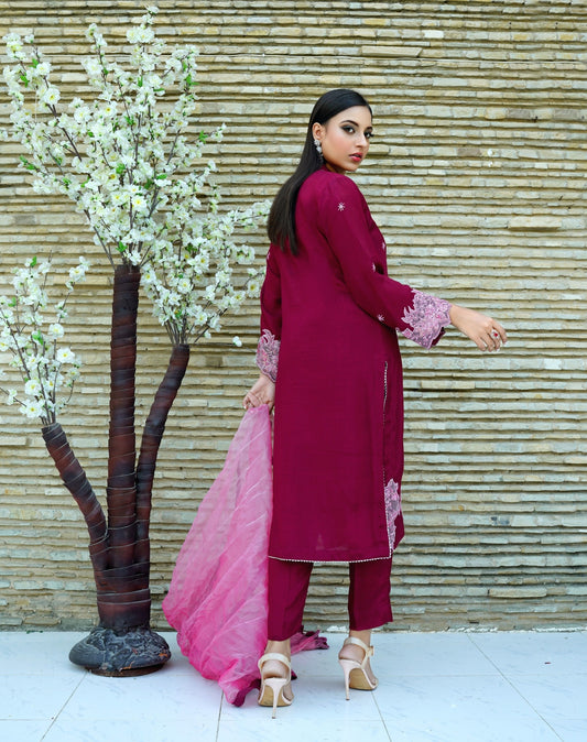 Purple Grace - 03 PC hand embroidered suit- S2024614