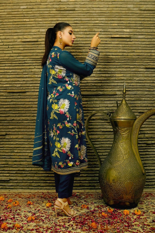 Floral Cascade- 03 PC Suit Embroidered Chiffon - CE20241023