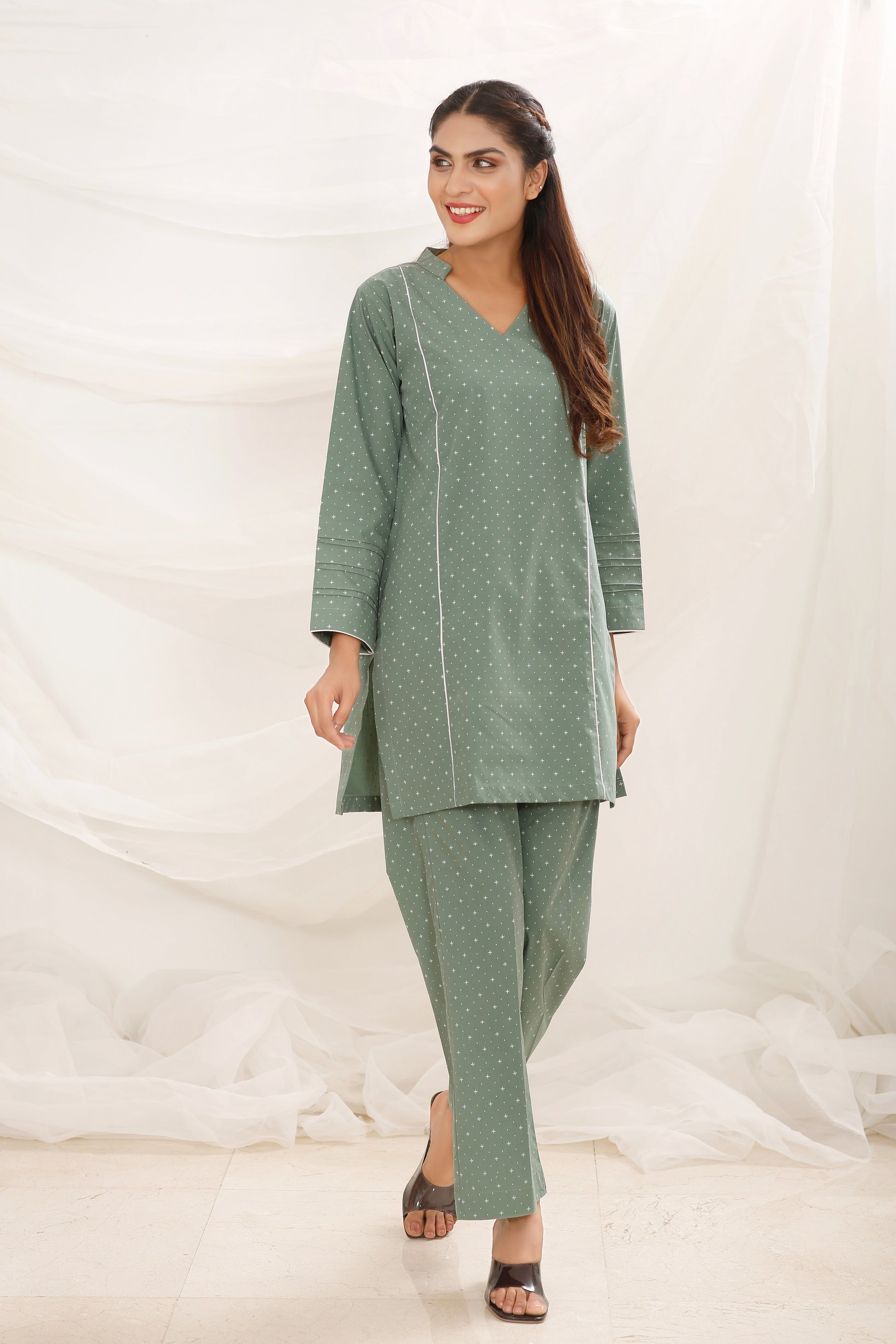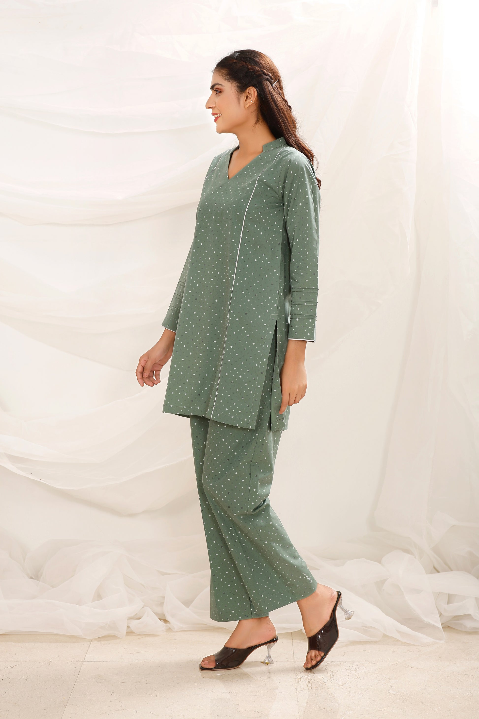 Frosted Jade: 02 PC Green Eastern Co-Ord set