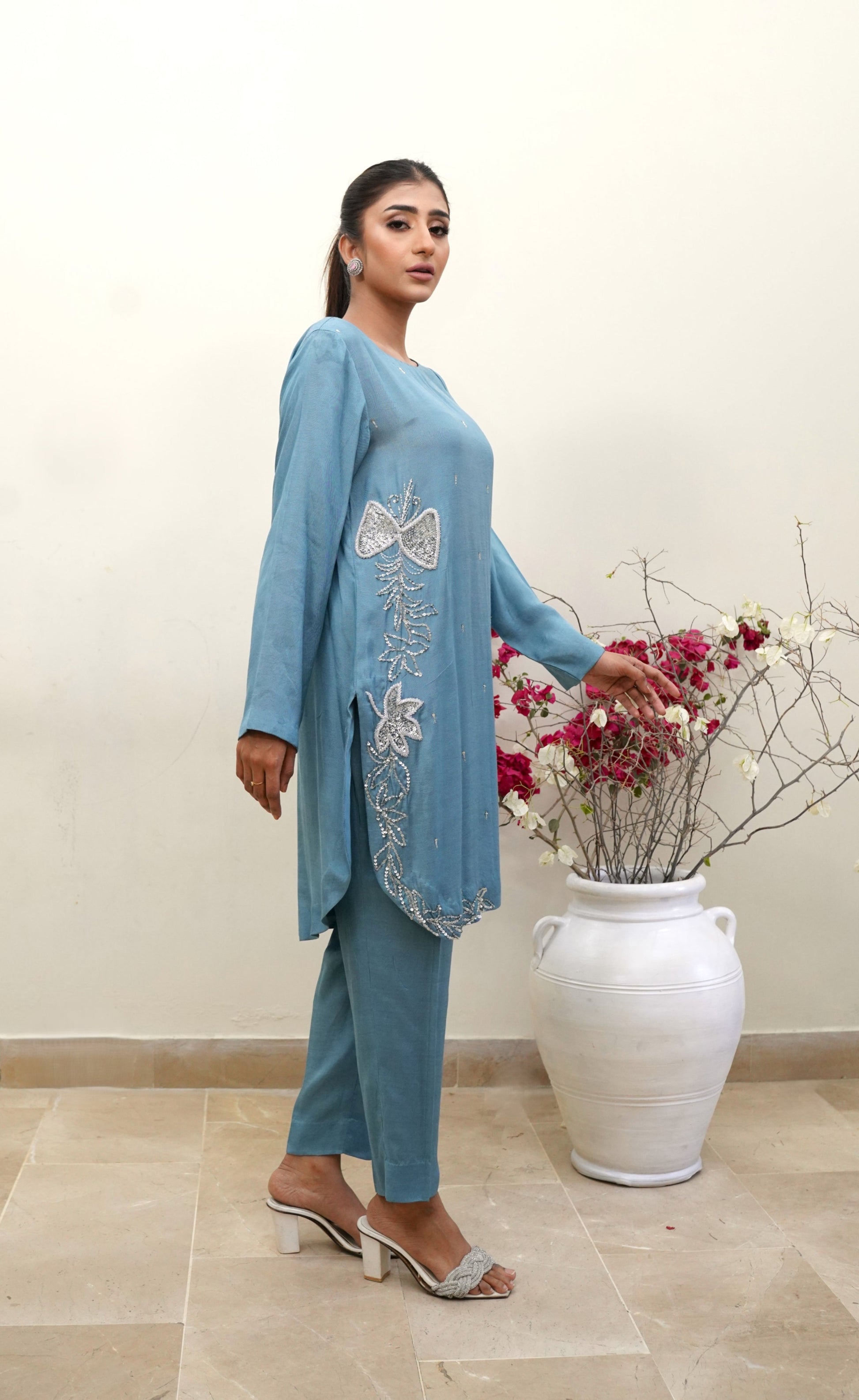 This tunic features a fun embellishment on the side and a stylish cut that makes it stand out! Pair it with fitted pants and a pair of wedges for a effortlessly chic look.