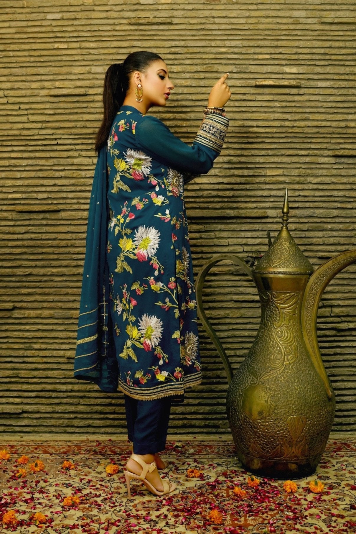 Floral Cascade- 03 PC Suit Embroidered Chiffon - CE20241023