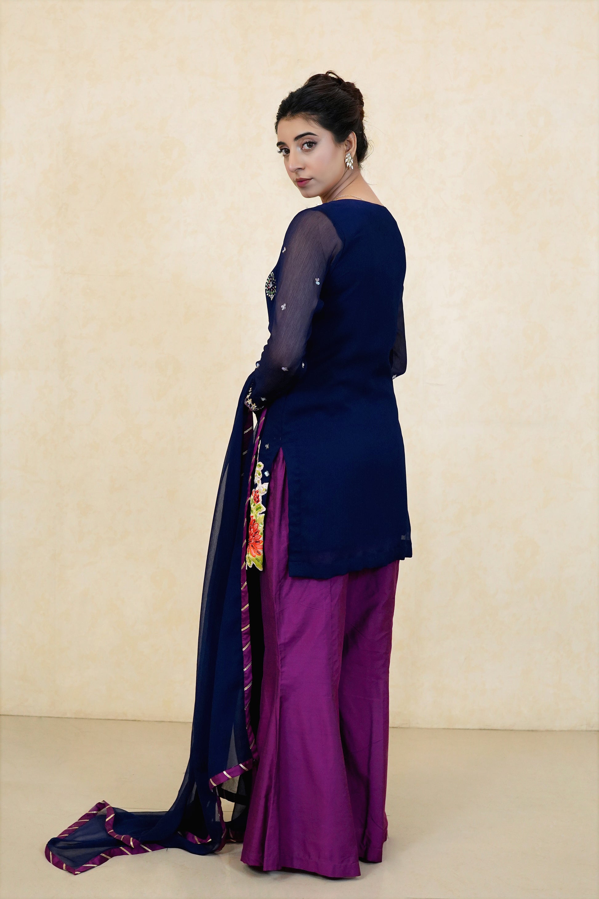 This luxe blue coloured formal top is the perfect attire for any formal affairs these hot days. With applique work, sparkle spray covering the top with smart neckline is giving it an oomph.